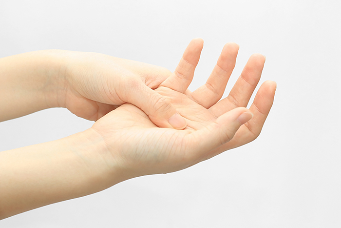 その結果、腱がスムーズに動かなくなり、指の付け根に痛み・腫れ・熱感などが出てくることがあります。